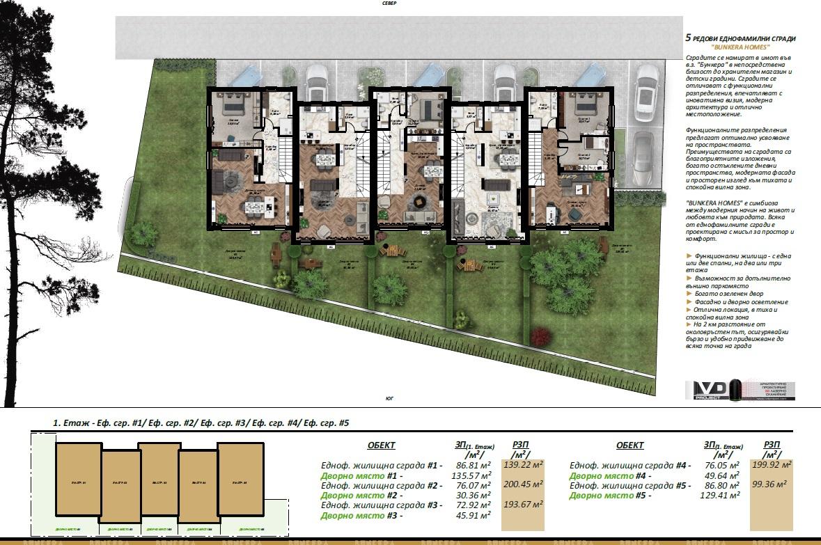 - 5 къщи разположени на два етажа ,гараж или паркоместа